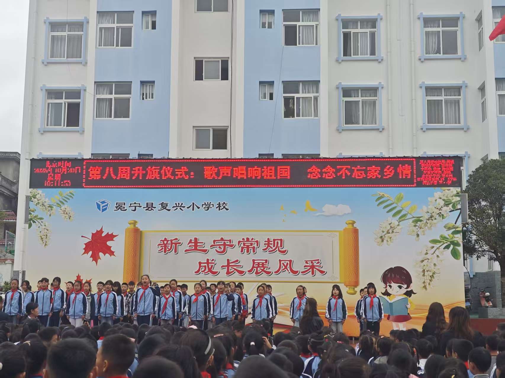 “歌声唱响祖国,恋恋不忘家乡情”——冕宁县复兴小学第八周升旗仪式