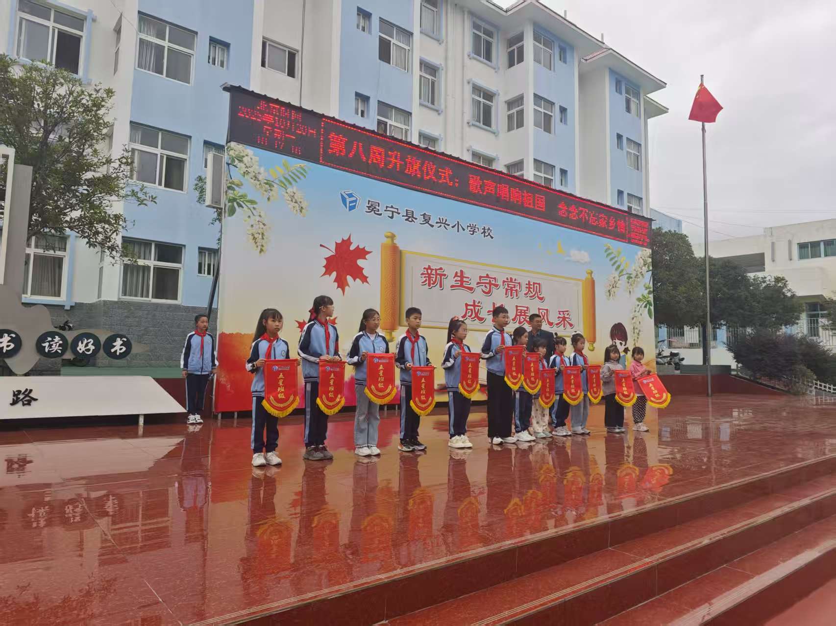 最后由上周的值周老师为上周学校的教学、卫生、纪律等方面进行总结,值周教师宣布上周获得流动红旗的班级是:1年级1班、1年级6班、2年级3班、3年级2班、4年级1班、4年级3班、5年级2班、5年级3班、6年级5班,曹校助为获奖班级颁发流动红旗,并鼓励全体学生向优秀班级学习,共同营造良好的校园氛围。愿每一位少年,既能以歌声颂祖国山河壮阔,也能以初心念家乡烟火温情,在党和祖国的怀抱中,带着家乡的期许,奔赴更远的未来!编辑:少先队