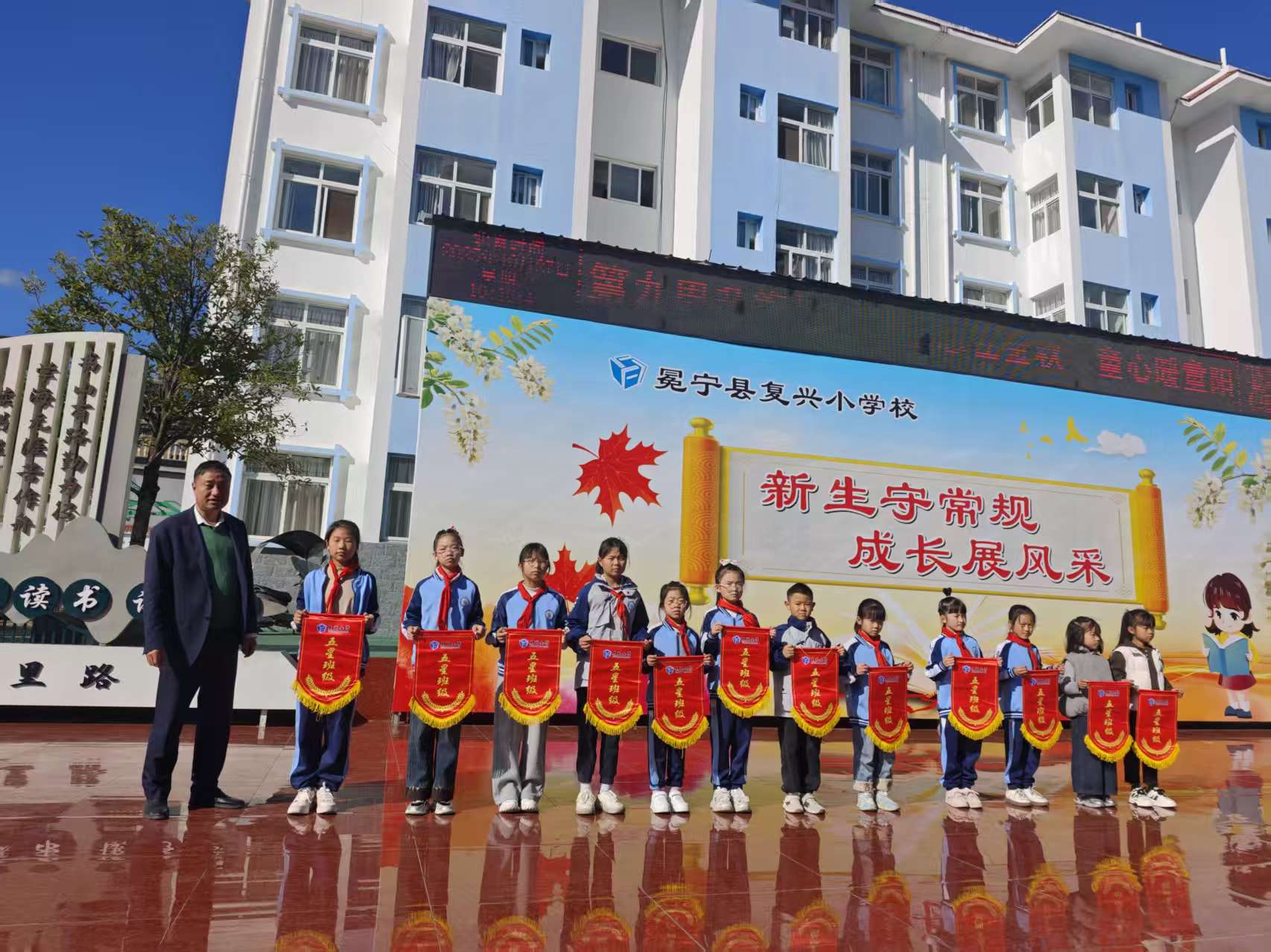 仪式第二项:冕宁县复兴小学校的少先队大队委同学在国旗下进行宣誓,表达了自己天天向上、好好学习、为学习奉献自己力量的精神。